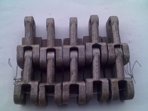 當(dāng)往復(fù)爐排行至尾部向下轉(zhuǎn)入空程以后,便依靠自重依次翻轉(zhuǎn)過來,倒掛在夾板上,能自動(dòng)清除灰渣,并獲得冷卻。各相鄰鏈條之間,用拉桿與套管相連,使鏈條之間的距離保持不變.。
